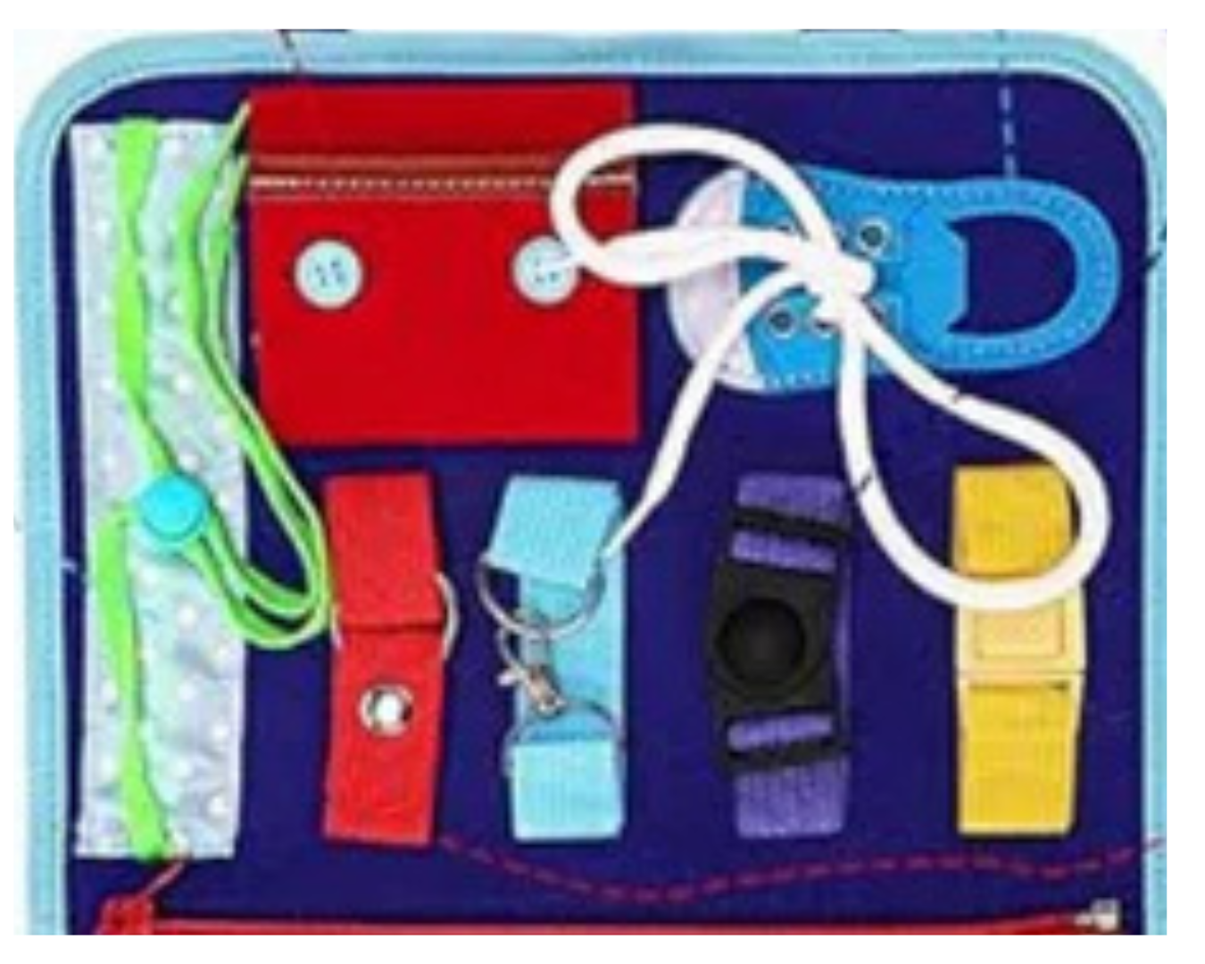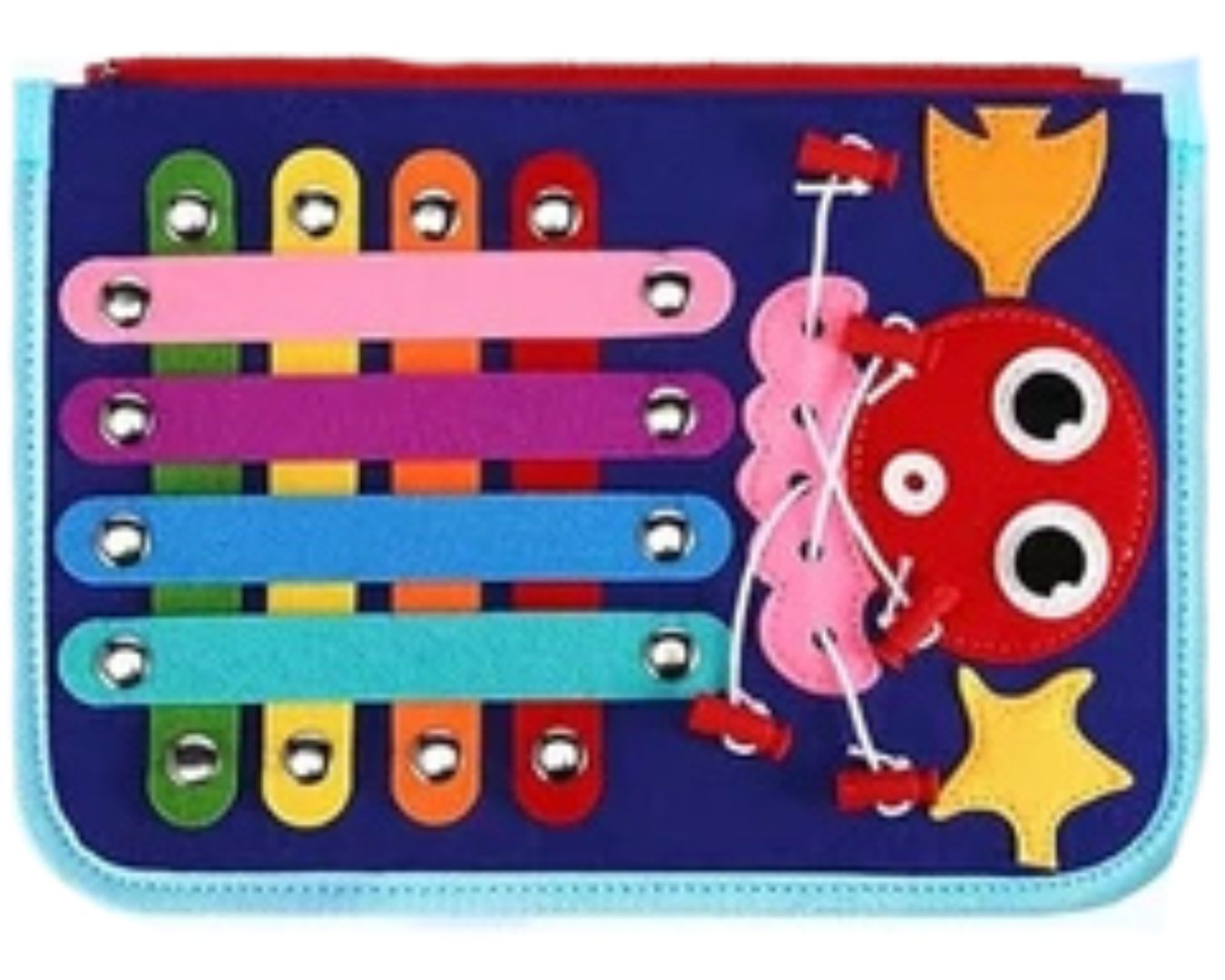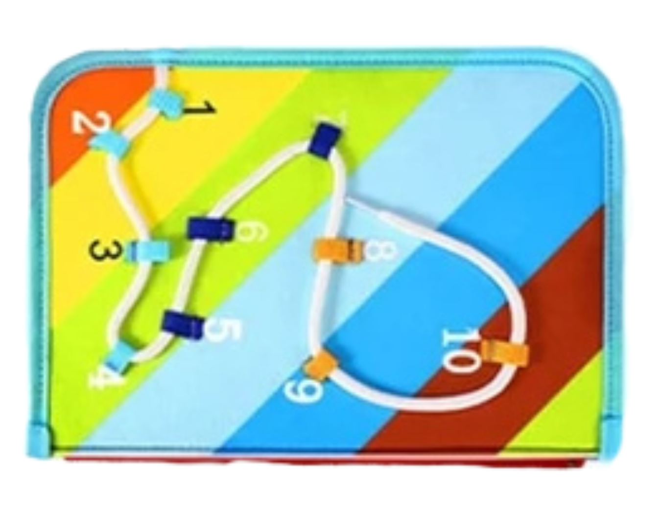 This section helps your child learn how to tie their shoes. By practicing with real shoelaces, it improves hand coordination and fine motor skills.